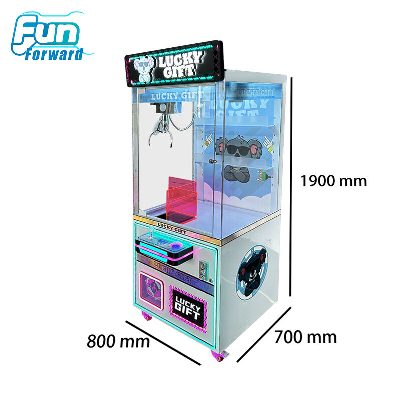 • Vibrant Showcase - Transparent cabinet with bright lighting displays plush prizes attractively; vibrant graphics and animations draw players from across the arcade floor.